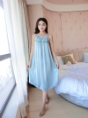 Đầm ngủ thun lụa DN354- xanh nhạt